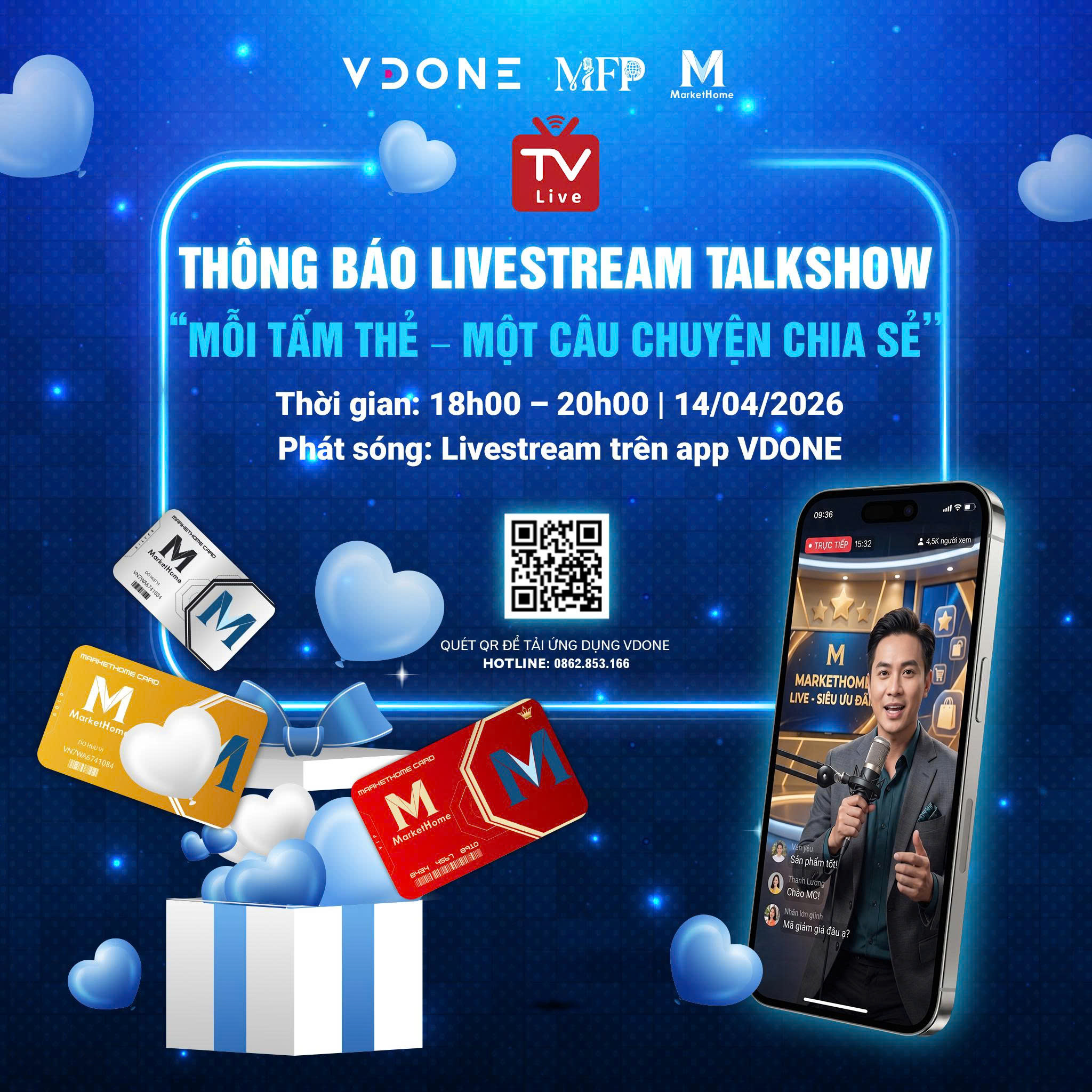 Talkshow “Mỗi Tấm Thẻ – Một Câu Chuyện Chia Sẻ” sẽ livestream vào 19h00 – 21h00 ngày 14/04/2026 trên nền tảng VDONE